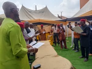 Swearing in of the new executives alongside Mr Godwin Muotue, Mr Chris Anekwe, and Barr Nnamdi Obiorah as the Vice Presidents General, Abuja, East, and North Branches respectively, who were also elected unopposed, climaxed the unified elections, that took place at Choice Hotels, Awka.